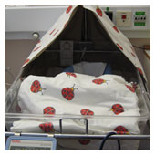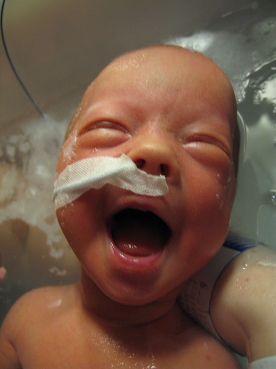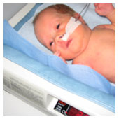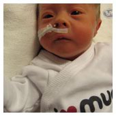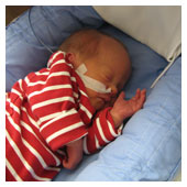 De har i dag fått svaren på blodproven och jag behöver inte sola. Har i dag varit med om mitt första bad. Det var så skönt, nästan som att ligga i mammas mage. Jag fick sedan ta på mig kläder (i kuvösen hade jag bara blöja) och flytta till en säng med varmvattenmadrass. De slangar jag har kvar nu är sonden i näsan och en avläsare runt foten som läser av min syresättning och mina hjärtslag. När jag väl lagts i säng fick jag flytta från den akutrum som jag lagts ifrån början till ett tillväxtrum. Så nu får jag bo med de barnen som är lite piggare. |