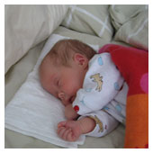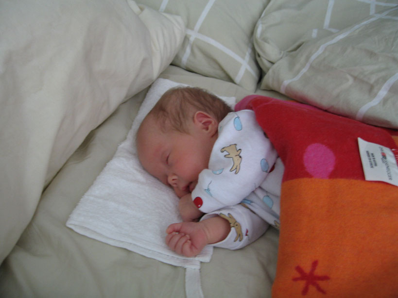 Nu är nålen bortplockad. Mamma och pappa får nu mata mig genom sonden i näsan. Samtidigt ligger jag vid mammas bröst och försöker suga lite men det är jobbigt, det går nog bättre när jag blir större. En läkare var inne och pratade med oss i dag. Han sa att jag var en oförskämt pigg tjej. När jag föddes var de beredda på att hjälpa mig att andas men det klarade jag ju själv utan hjälp. När man kan andas själv från början behöver man sällan hjälp senare med andningen. I dag har jag fått ett namn, AGNES. Pappas farmor heter Agnes i andranamn. |