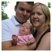 Mamma, pappa och så lilla jag har varit och hälsat på en annan familj som har en dotter som är ca en månad äldre är jag. Kul att mamma och pappa känner några andra med barn som jag kan leka med. |