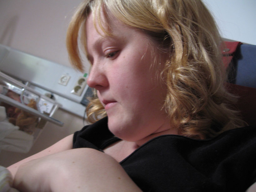 De flesta måltider i dag har jag ätit bara på mamma. Det gick ganska bra med framåt småtimmarna blev jag väldigt trött och gnällig så de fick ge mig mat genom sonden igen. |
