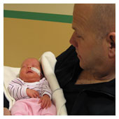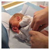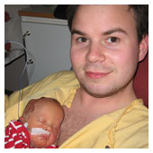 I dag har de plockat bort mitt dropp. Klarar jag mig utan det så plockar de bort nålen jag har i handen i morgon. Mamma och pappa kommer in till mig och hälsar på. Det är ju skönt att få komma ut ur kuvösen och få ligga lite hos dem. De som jobbar här säger att det är viktigt att få ligga hos mamma och pappa. Känna deras närhet och höra deras hjärtslag. Mysigt. |
