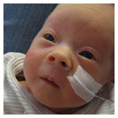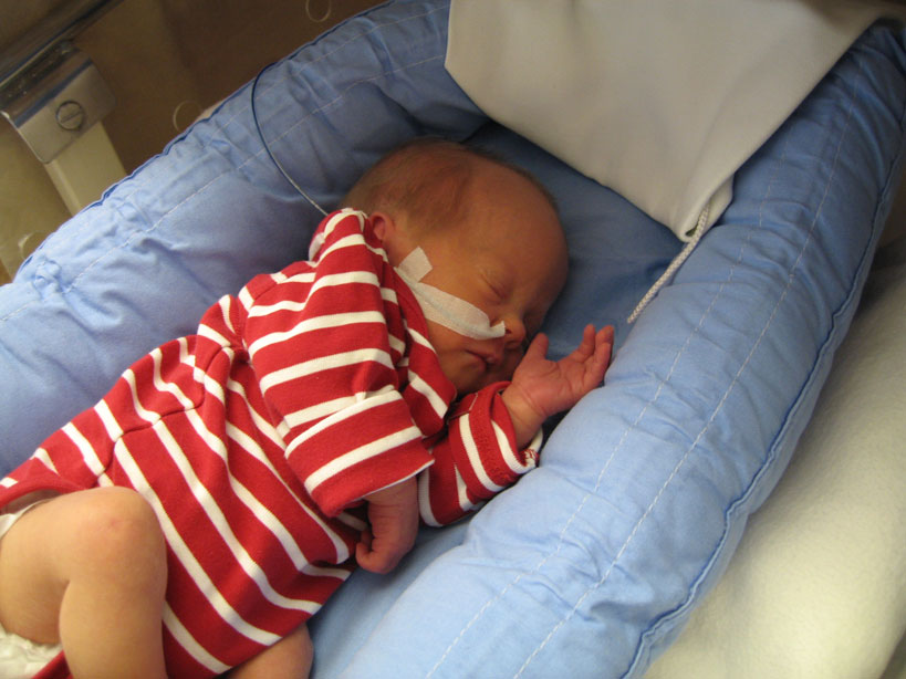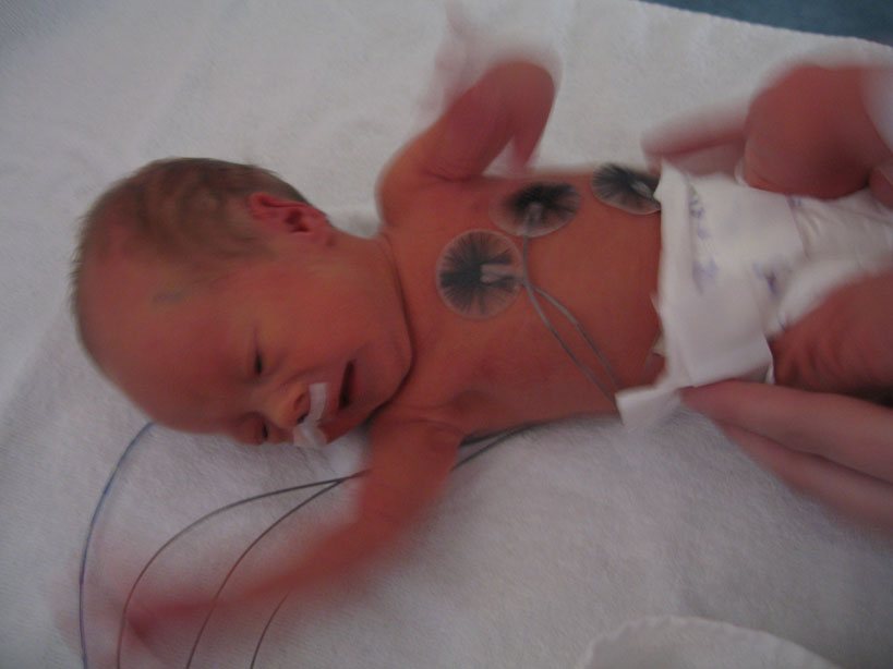 De har i dag fått svaren på blodproven och jag behöver inte sola. Har i dag varit med om mitt första bad. Det var så skönt, nästan som att ligga i mammas mage. Jag fick sedan ta på mig kläder (i kuvösen hade jag bara blöja) och flytta till en säng med varmvattenmadrass. De slangar jag har kvar nu är sonden i näsan och en avläsare runt foten som läser av min syresättning och mina hjärtslag. När jag väl lagts i säng fick jag flytta från den akutrum som jag lagts ifrån början till ett tillväxtrum. Så nu får jag bo med de barnen som är lite piggare. |