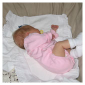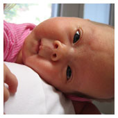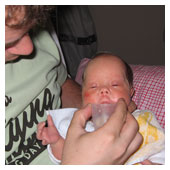 Nu är nålen bortplockad. Mamma och pappa får nu mata mig genom sonden i näsan. Samtidigt ligger jag vid mammas bröst och försöker suga lite men det är jobbigt, det går nog bättre när jag blir större. En läkare var inne och pratade med oss i dag. Han sa att jag var en oförskämt pigg tjej. När jag föddes var de beredda på att hjälpa mig att andas men det klarade jag ju själv utan hjälp. När man kan andas själv från början behöver man sällan hjälp senare med andningen. I dag har jag fått ett namn, AGNES. Pappas farmor heter Agnes i andranamn. |