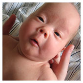 Mitt första besök på BVC. Gjorde nog väldigt bra intryck så jag skrek hela tiden och kissade på undersökningsbordet. |