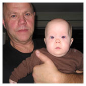 Hej! Kul att just du tittar in. Ligger nu lite nya bilder ute under 5 månader. Här har ni en bild på mig och min morfar. De säger vi är lika, vad tycker du? |