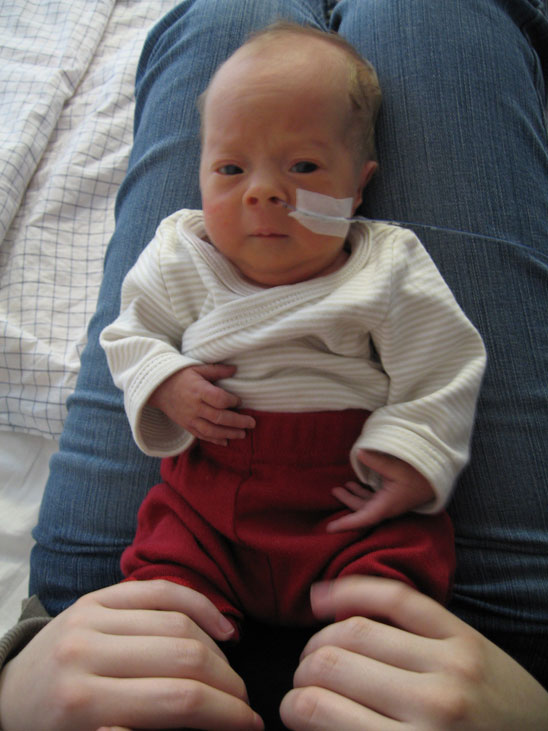 Det sista jag gjorde innan jag åkte hemifrån var att dra ut sonden. När vi kom tillbaka till sjukhuset fick jag ingen ny. De tyckte att jag skulle äta på mamma allt som jag bara kunde och sedan få resten via en drickkopp. |