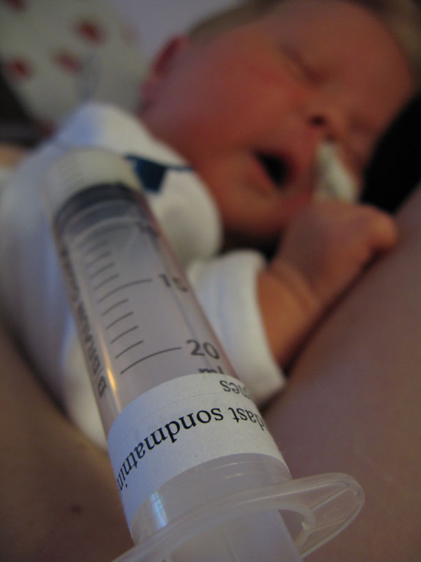 De flesta måltider i dag har jag ätit bara på mamma. Det gick ganska bra med framåt småtimmarna blev jag väldigt trött och gnällig så de fick ge mig mat genom sonden igen. |