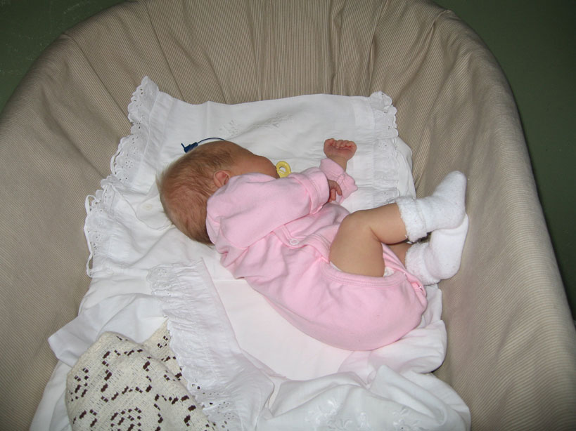 En månad är jag nu. Min mamma har nog fortfarande inte fattat att hon är mamma men hon har ju ett ärr på magen som påminner henne om det hela. De har tagit bort min sänghimmel idag då de tycker att jag sover bra utan känna mig ombonad. |