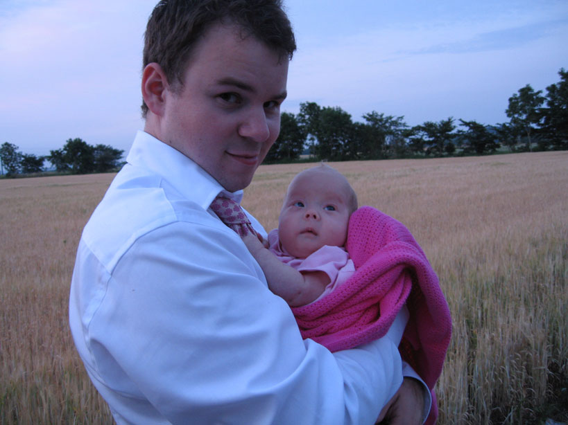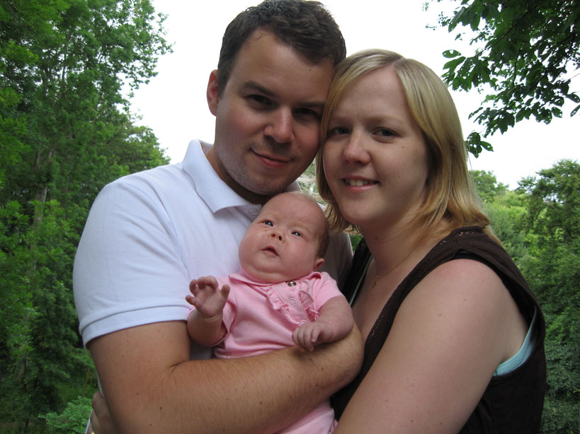 Mamma, pappa och så lilla jag har varit och hälsat på en annan familj som har en dotter som är ca en månad äldre är jag. Kul att mamma och pappa känner några andra med barn som jag kan leka med. |