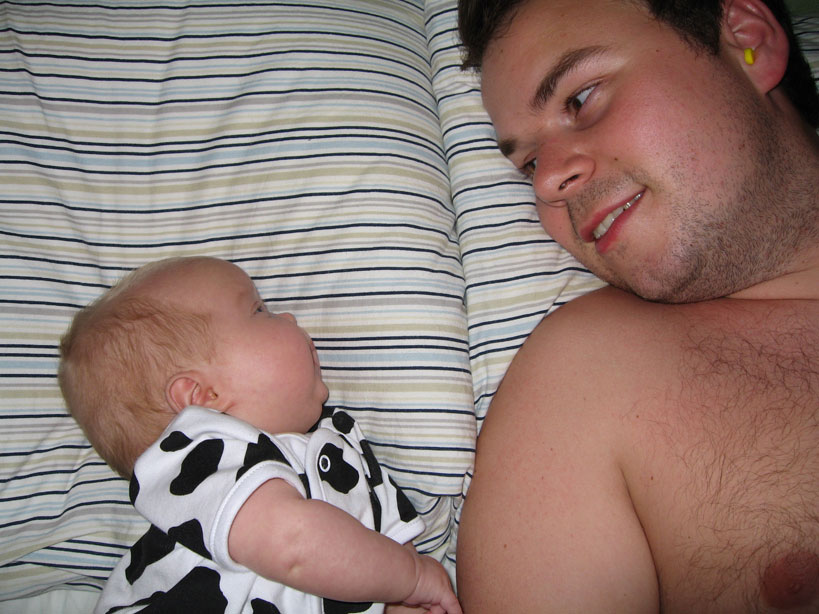 Vi jobbar på det där med att äta själv. Då jag är duktig och suger på mammas bröst får jag mindre mat genom sonden. Min yngsta farbror och hans tjej har varit här och hälsat på i dag. |